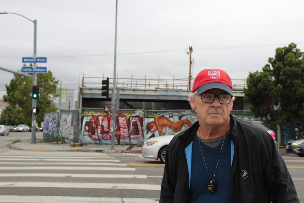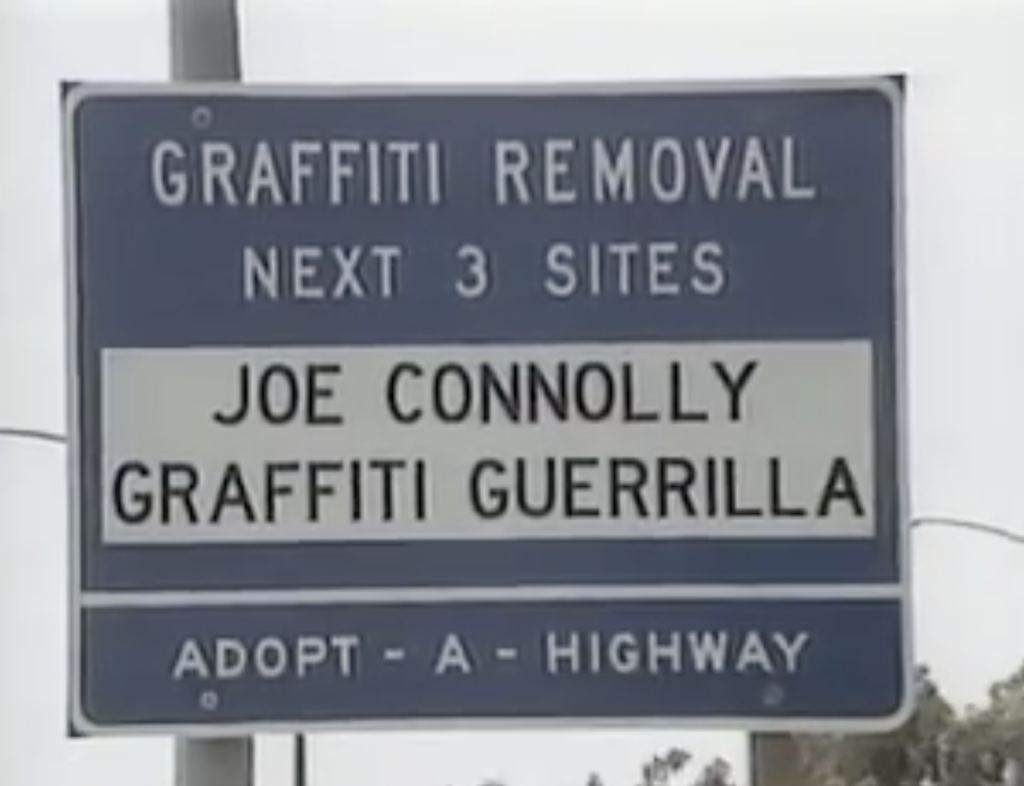 After befriending the young graffiti writers, he began studying and addressing street tagging at City Council meetings and schools, and meeting young gang members. He then adopted a segment of the Santa Monica Freeway through “Adopt-A-Highway, where he would spend hours in an orange vest and hard hat removing graffiti. Then, he decided to comment on graffiti culture through his own paradoxical piece.