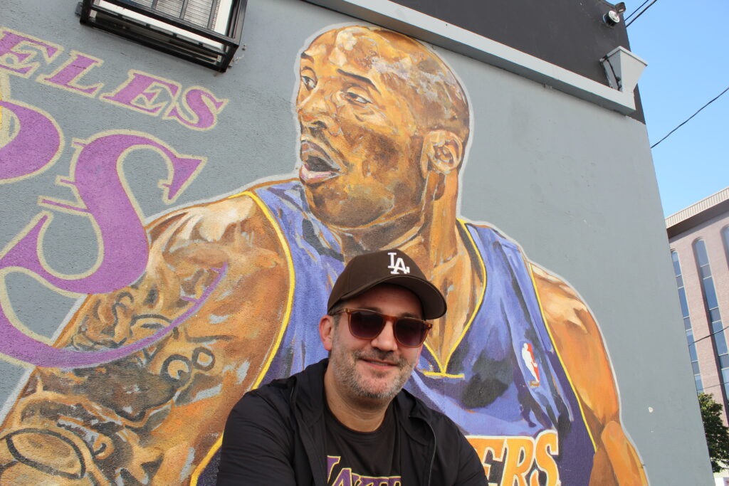 Louis Palsino, AKA Sloe Motions, AKA Sloe, has spent years painting murals of celebrated Los Angeles figures: Kobe, Nipsey Hustle, Kendrick Lamar, Snoop Dogg, Fernando Valenzuela, Shohei Otani, and most recently, Luka Doncic. His latest piece is of Doncic with Gianna and Kobe in the background; a tribute to the Laker star for donating $5,000 to Sloe’s GoFundMe aimed to restore a mural of Kobe and Gianna on the side of Jimmy Jam T-Shirts that was vandalized. He initially sought donations to help cover the cost of restoring the mural to preserve the spot for the Bryant family.