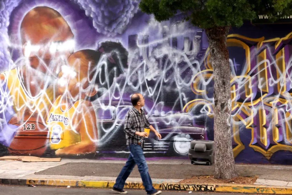 Connolly notes that public murals dedicated to Kobe Bryant, among other figures, are vulnerable to tagging and erasure. “You have to remember, this is a business that runs on chaos, complete chaos. [Vandals] need to have that,” said Connolly. “They’re addicted, they’ll never stop.”